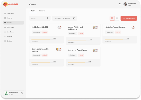Get full control over your teaching classes. Assign teachers to classes, set classroom capacity, define your students’ Arabic level and more!