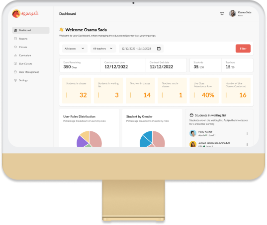 Get full control over your teaching classes. Assign teachers to classes, set classroom capacity, define your students’ Arabic level and more!